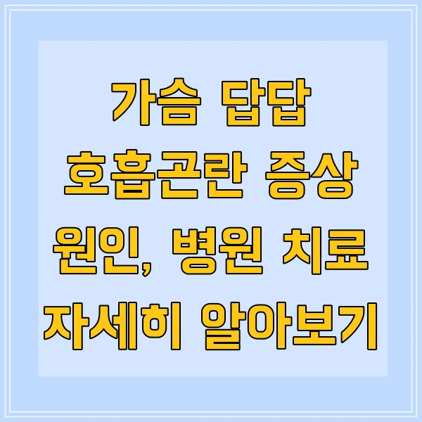 가슴 답답함과 호흡곤란…?! 같이 오면 정말 당황스럽죠? ㅠㅠ 도대체 왜 이런 증상이 나타나는 걸까요? 혹시 심각한 질병의 전조증상은 아닐까 걱정되기도 하고… 그 불안한 마음, 백 번 이해합니다! 지금부터 여러분이 궁금해하실 만한 원인 질환들을 찬찬히 살펴보고, 어떤 진단 과정을 거치는지 자세하게 알려드릴게요! ^^
