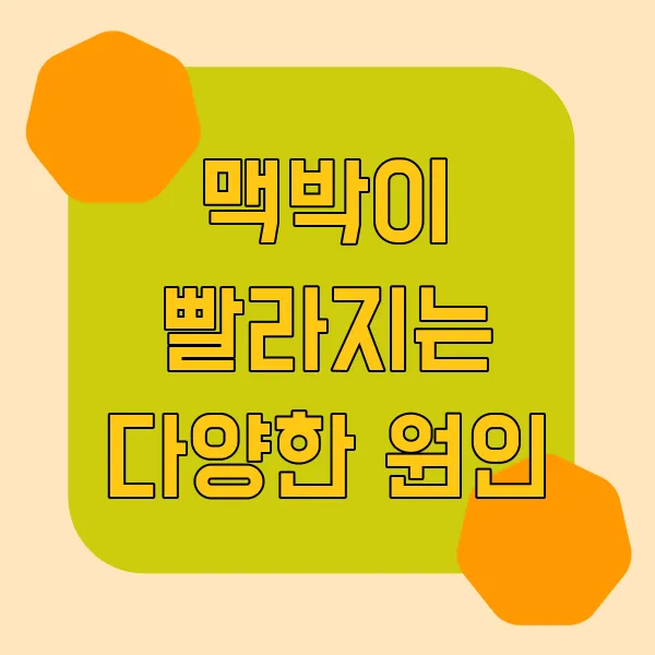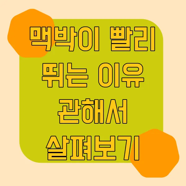 휴, 심장이 막 쿵쾅쿵쾅 뛰는 거 느껴보신 적 있으시죠? 마치 마라톤 10km 완주한 것처럼 말이에요! 그런데 진짜 운동 후도 아닌데 맥박이 빨라진다면?! 단순히 긴장해서 그런 건지, 아니면 뭔가 문제가 있는 건지 걱정되기 시작하죠? 그럴 땐 어떤 증상이 나타나는지, 또 어떻게 대처해야 하는지 제대로 알아두는 게 정말 중요해요! 자, 그럼 함께 빠른 맥박의 세계로 풍덩~ 빠져볼까요?